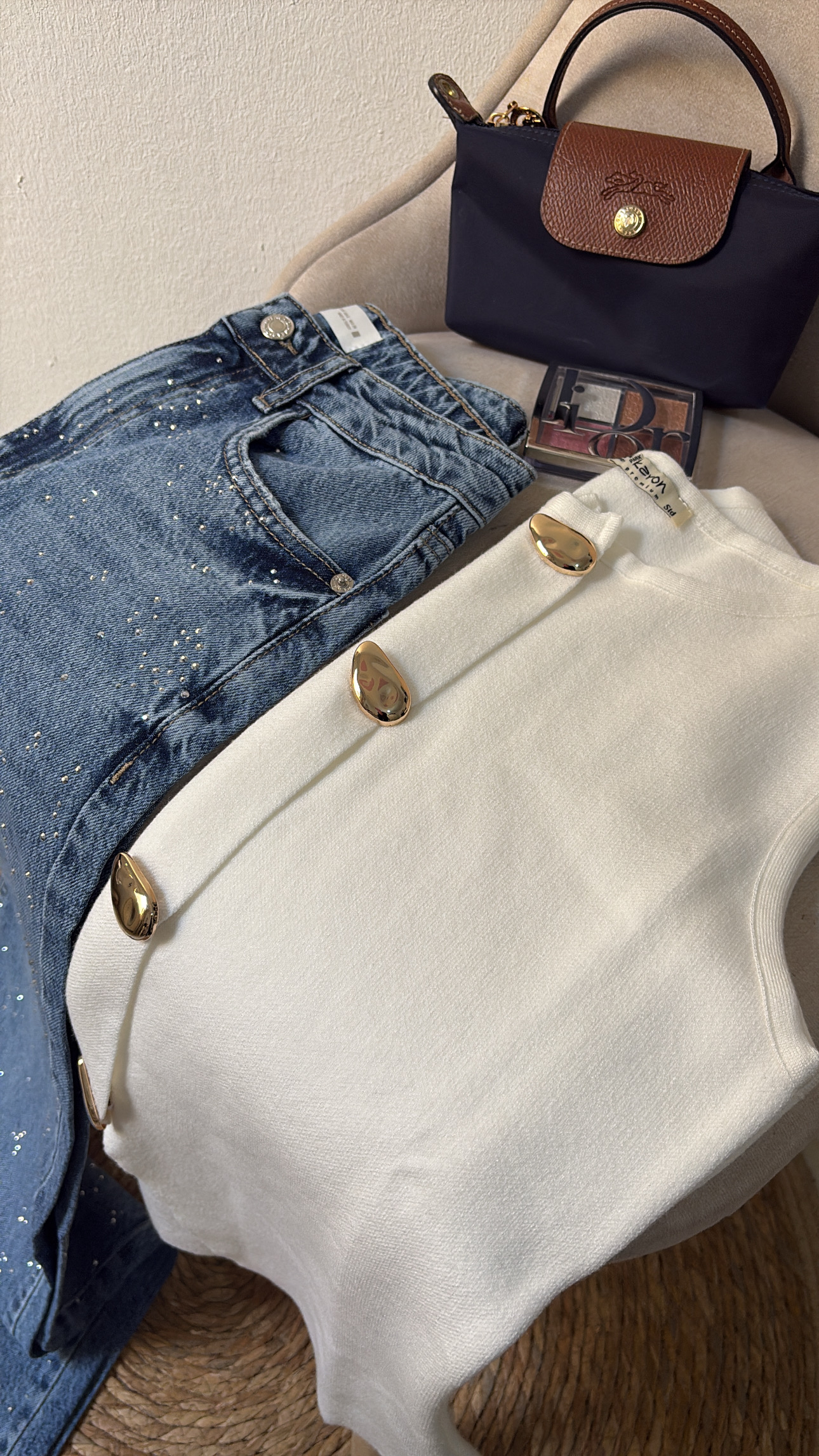 - Decorative gold front buttons