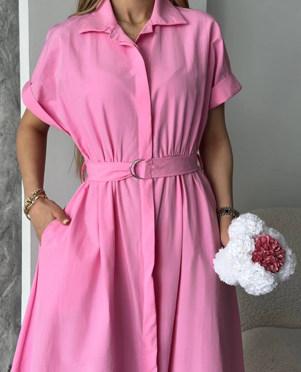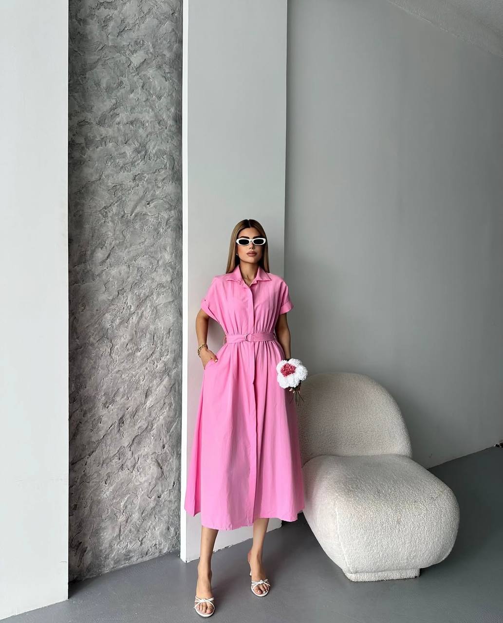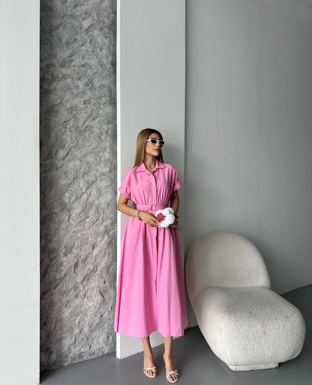 Cette superbe robe chemise midi incarne l’élégance contemporaine dans une magnifique teinte rose poudré douce et féminine. Avec sa coupe architecturale et sa ceinture élastique, elle représente parfaitement le style moderne et raffiné pour toutes les occasions spéciales.